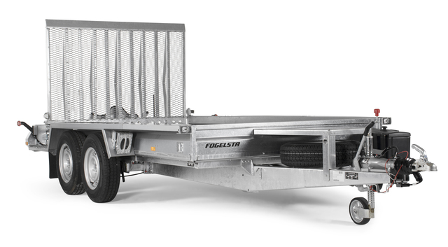 För entreprenörer och anläggningsanvändare som behöver en säker lösning för att transportera sina maskiner. Lastvinkeln är låg tack vare den långa förstärkta rampen. De gångbara stänkskärmarna gör det enkelt att gå in och ut ur ditt fordon. Skopstöd och kraftigt jockeyhjul är standard. Bilderna är endast illustrativa och kan visa extrautrustning.