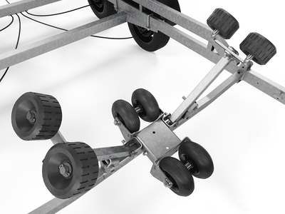 Båtupptagningsvagn för båtar upp till 26 fot. Utrustad med två förstärkta självjusterande vaggor, justerbara förstärkta kölrullar och dubbla sidorullar av X-line-kvalitet för enkel anpassning till din båt. Varmgalvaniserat chassi för lång hållbarhet. Vinsch och vinschtorn som är enkelt att justera, vinschtornet är även utrustat med en extra säkerhetsvajer för användning vid transport. Båttrailern på bilden kan vara extrautrustad.