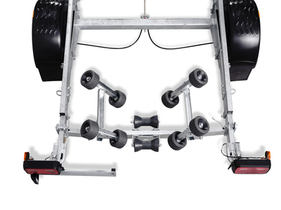 Adaptiv Superrullsvagga är en smart lösning med en unik placering av rullar. Den utökade mängden rullar skapar mer stöd mot båtskrovet.