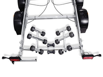 Adaptiv Superrullsvagga är en smart lösning med en unik placering av rullar. Den utökade mängden rullar skapar mer stöd mot båtskrovet.