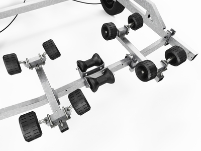 För extra skydd och smidig av- och pålastning kan du välja till superrullar, som tack vare de extra rullarna och den automatiska justeringen minimerar belastningen på skrovet. När båten står på trailern vilar den på kölrullarna och stöds av superrullarna.