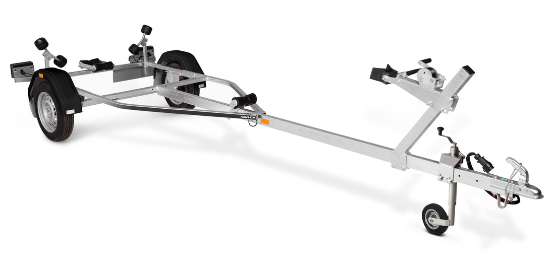 Obromsad trailer för mindre båtar upp till 15 fot, justerbara kölrullar i hög kvalitet och dubbla sidorullar för enkel anpassning till din båt. Varmgalvaniserat chassi för lång hållbarhet. Elen är helt skyddad i båttrailerns chassi. Vattentäta hjullager förlänger livstiden. Justerbart vinschtorn. Två fixerade lampor som inte behöver tas bort vid av- och pålastning av din båt. Båttrailern på bilden kan vara extrautrustad.