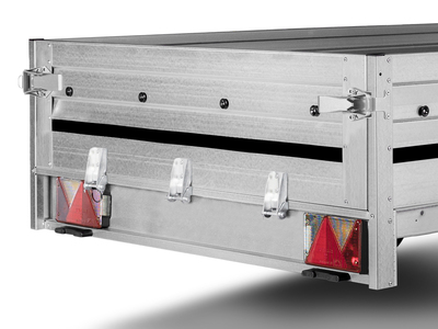 Fällbar bakläm för enkel lastning och möjlighet till att frakta längre gods.