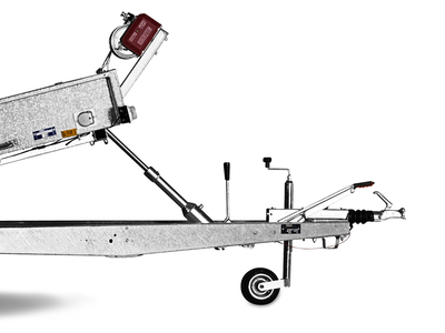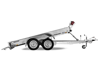 Rejält konstruerad, tippbar släpvagn för proffsanvändaren som transporterar entreprenadmaskiner, cementblandare, trädgårdsmaskiner och liknande. Bakläm med uppkörningsramp, infällda bindöglor och vinschstativ är standard. Vagnen på bilden kan vara extrautrustad.