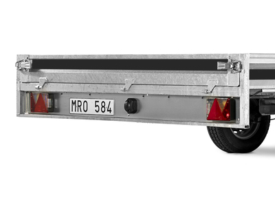 Fällbar bakläm för enkel lastning och möjlighet till att frakta längre gods.