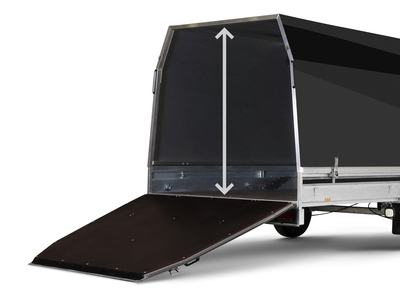 Kåpan är 163 cm hög, och 188 cm bred, vilket gör att du kan lasta utan att tippa släpet eller lyfta kåpan.