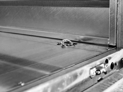 Nedsänkta bindöglor på flaket som förenklar surrning av lasten.