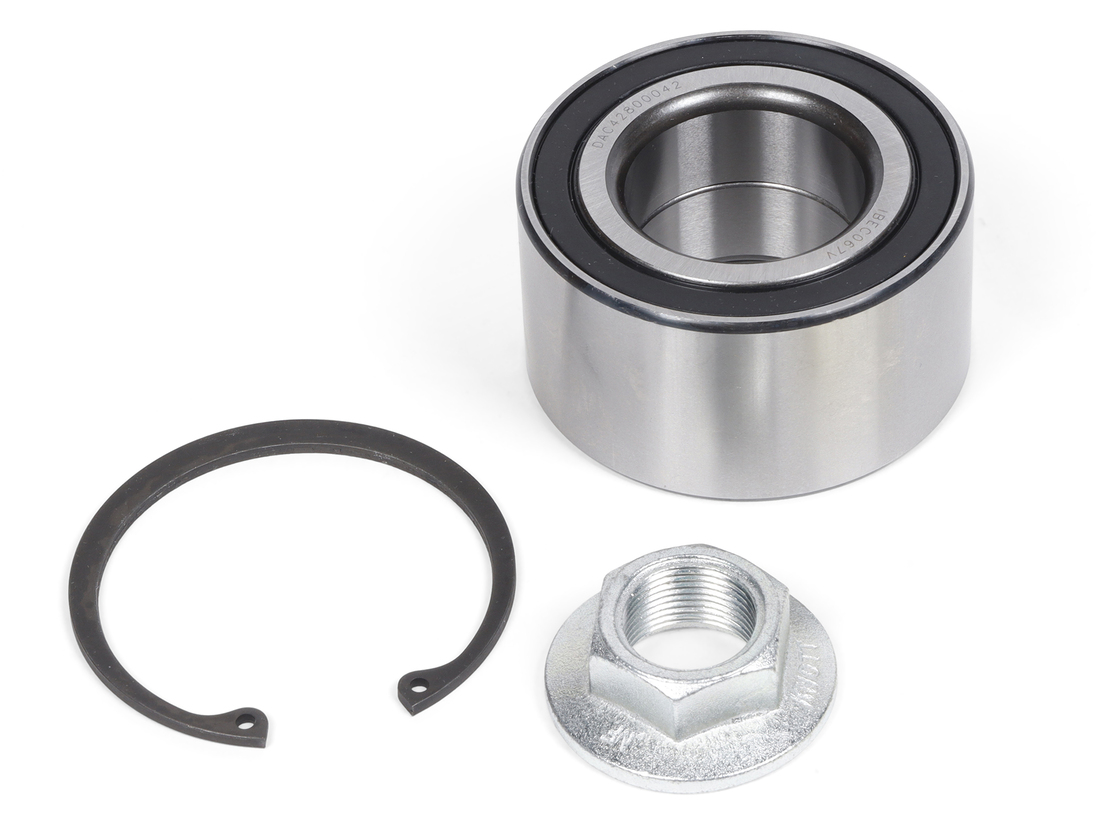 Hjullagersats kompakt, tätat hjullager inkl. låsring och låsmutter. Innerdiameter = Ø42mm, ytterdiameter = Ø80 mm, bredd=42mm
