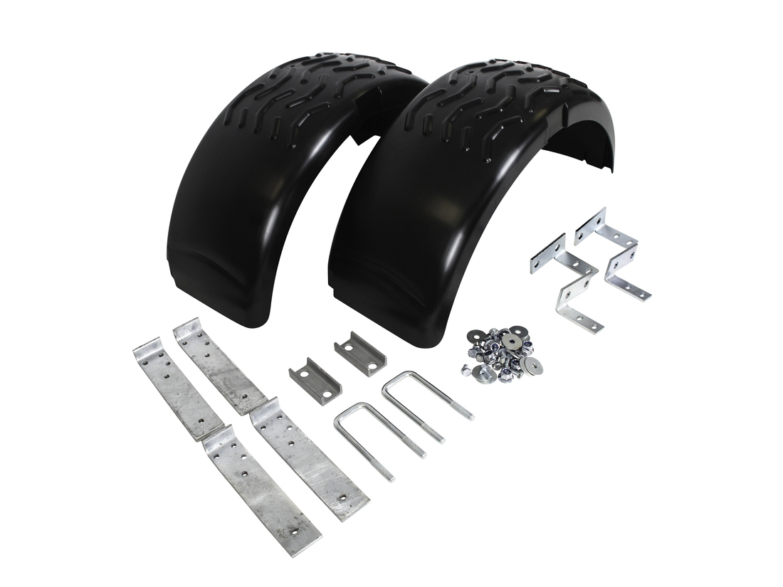 För de flesta enkelaxlade båtupptagnings- vagnar, skyddar mot stänk från vägbanan. 2 svarta skärmar med monteringskit.